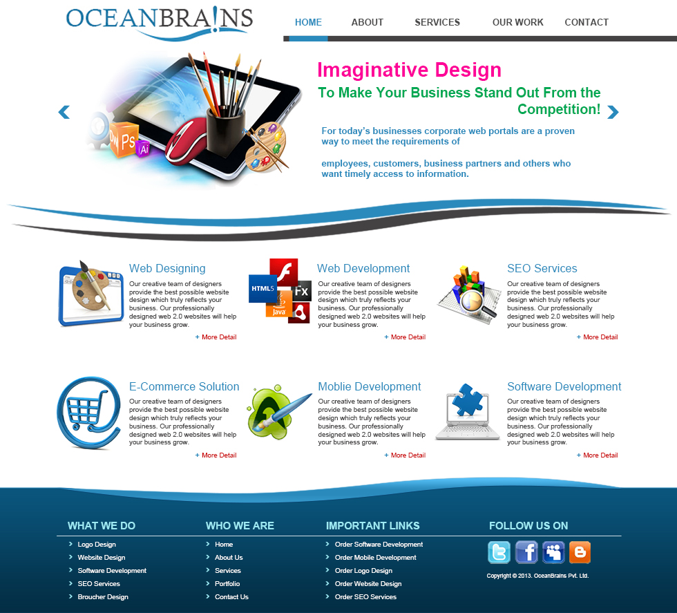 Ocean Brains Designed web mockup and developed front-end. Tools: Photoshop, HTML/CSS, JavaScript & JQuery.
